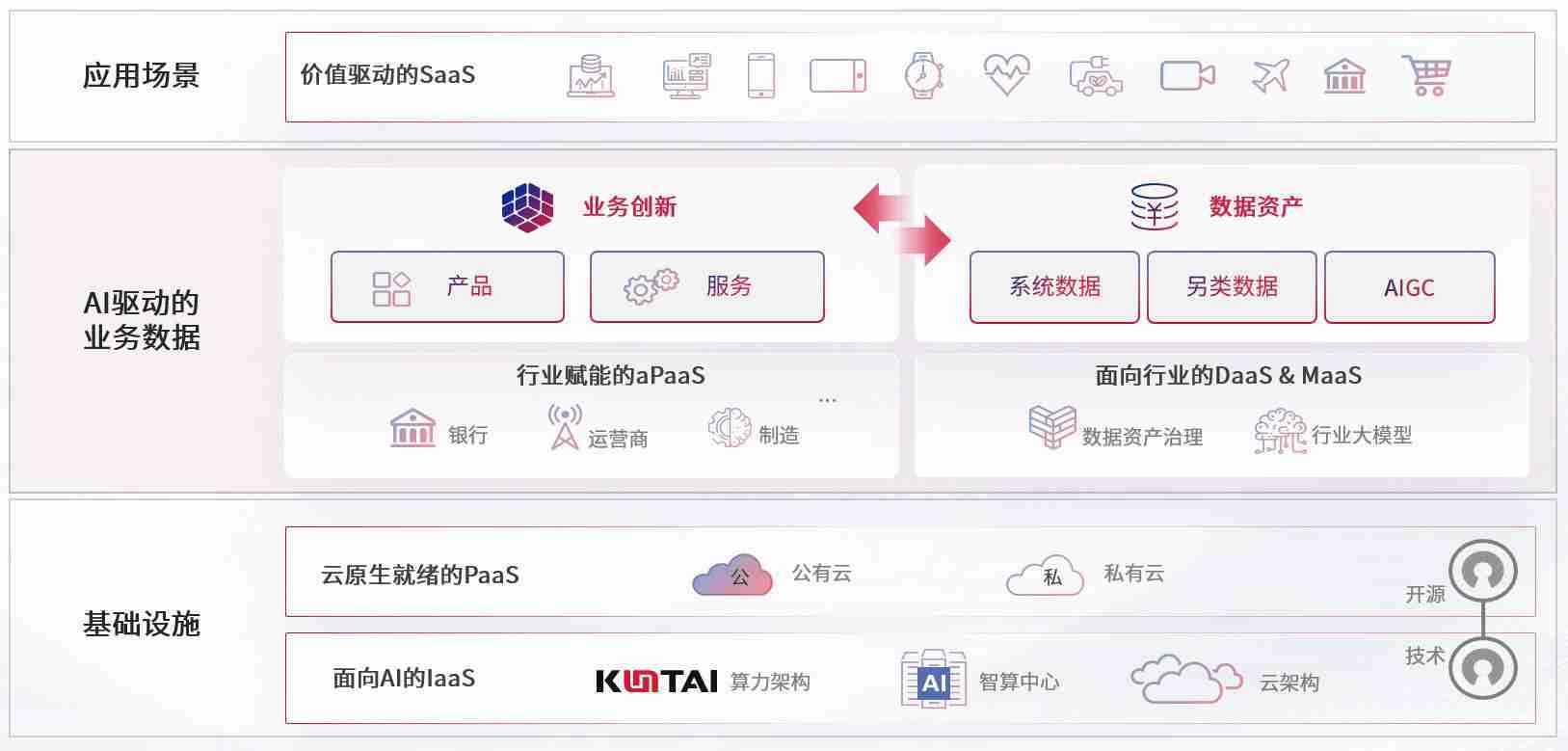 数字时代,,,围绕企业数字化转型的关键要素,,,南宫娱乐数码开创性的提出数云融合战略和技术体系框架,,,,着力在云原生、、数字原生、、、、AI原生和信创产业上架构产品和服务能力,,,为处在不同数字化转型阶段的快消零售、、、、汽车、、金融、、医疗、、、、政企、、教育、、运营商等行业客户提供泛在的敏捷IT能力和融合的数据驱动能力,,,构建跨界融合创新的数字业务场景和新业务模式,,助力企业级客户建立面向未来的核心能力和竞争优势,,,,全面推动社会的数字化、、、、智能化转型升级。。。。